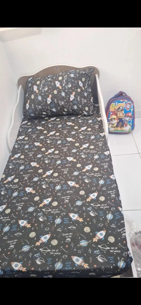 Linda cama infantil com design moderno e confortável. Perfeita para o quarto dos seus filhos, proporcionando noites de sono tranquilas e cheias de sonhos.