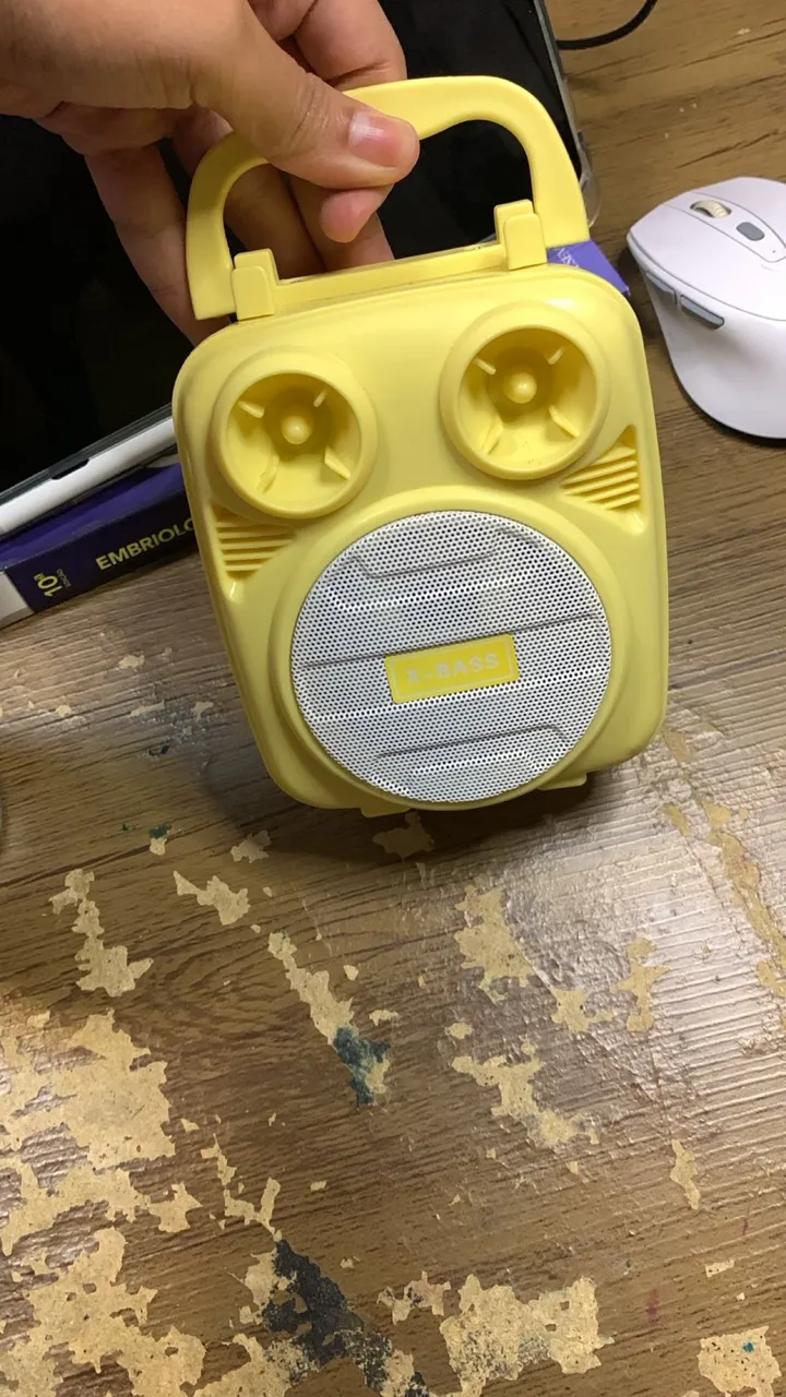 Som portátil com design compacto e alça para fácil transporte. Ideal para animar seus momentos com um som de qualidade.