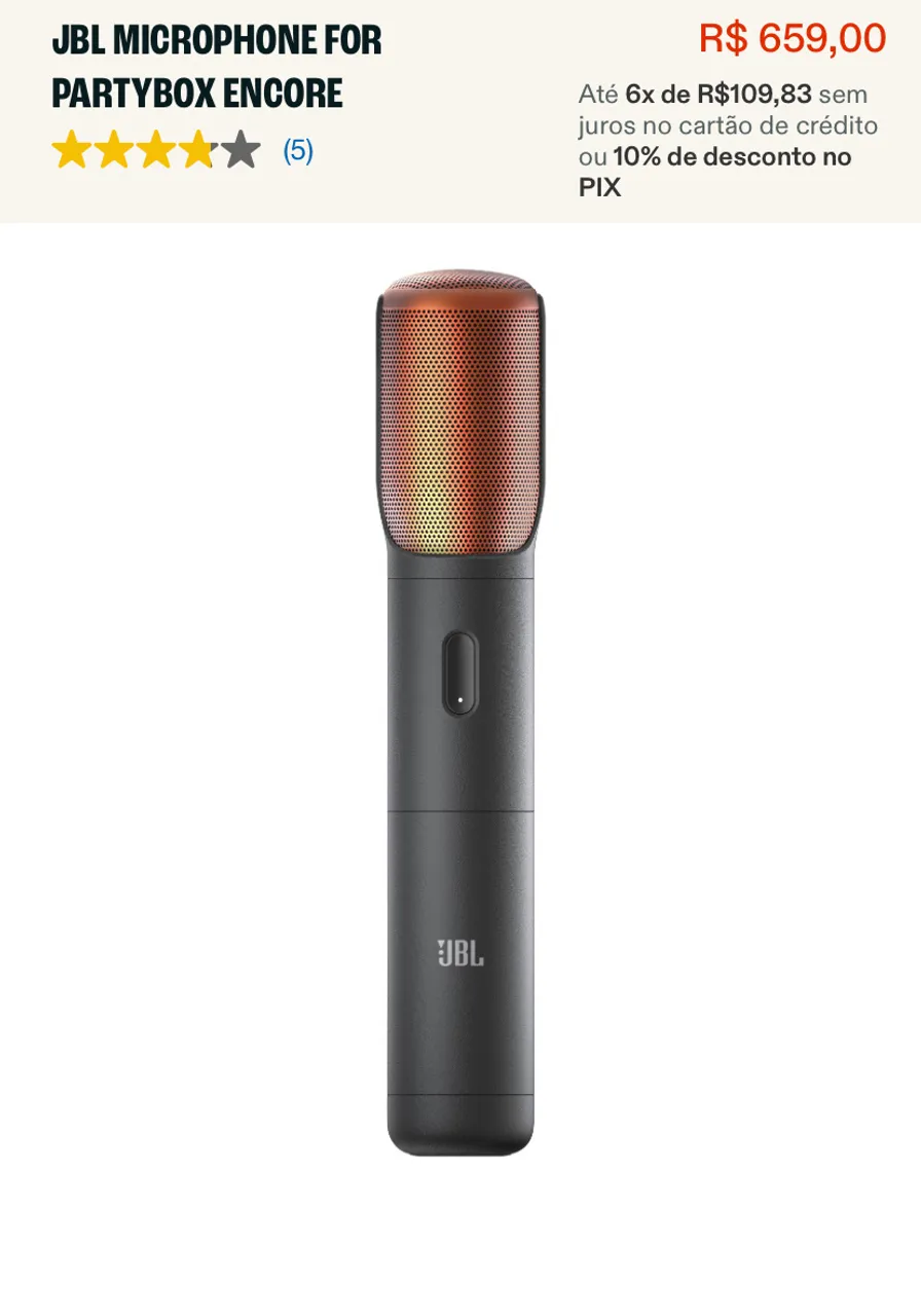 Microfone JBL para Partybox Encore: Qualidade de som excepcional para suas festas e eventos! Leve a experiência sonora a um novo nível com este microfone de alta performance.