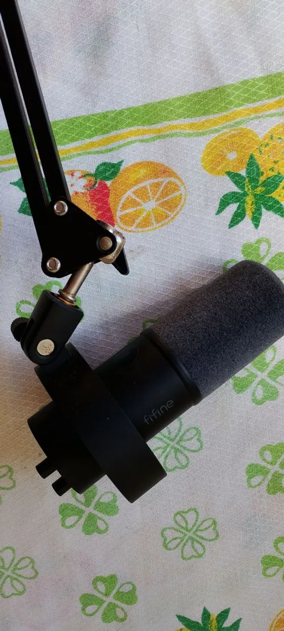 Microfone fifine, vai com cabo USB e funciona cabo XLR. K688 Studio podcast