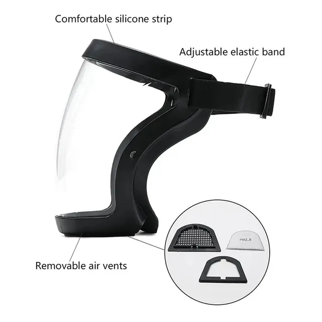 Faceshild com vedação laterais e 2 filtros.