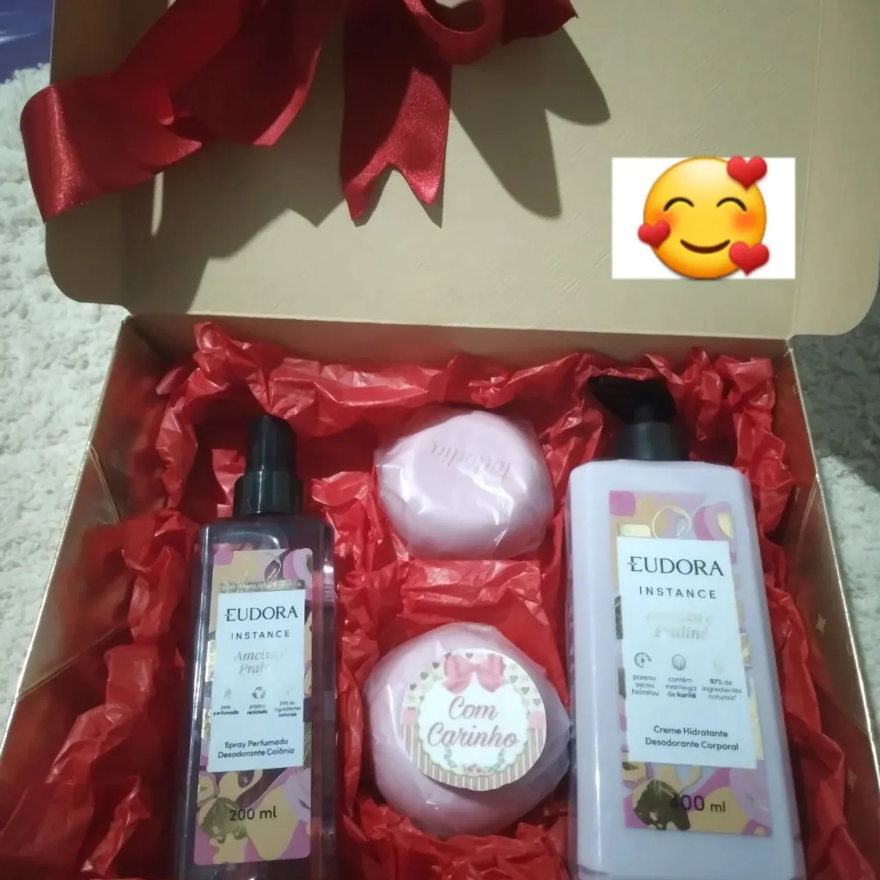 Kit Eudora Instance contendo: Spray Perfumado Desodorante Colônia Amêixa Práline, Creme Hidratante Desodorante Corporal e Sabonete. Ideal para presentear.