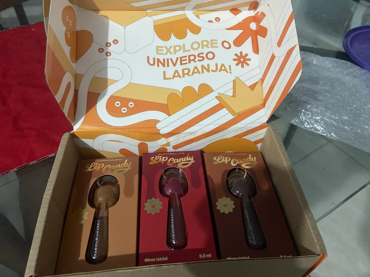 Descubra o universo de cores com o Lip Candy Marimariamake! Com três tons incríveis, este gloss labial vai realçar sua beleza com um toque vibrante e cheio de estilo. Experimente a explosão de cores e o brilho que só o Lip Candy pode te proporcionar!
