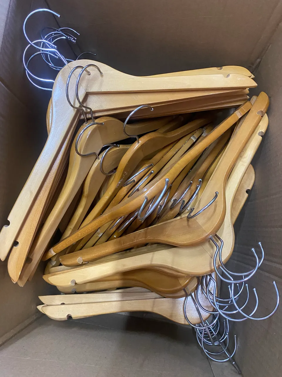 cabides de madeira para roupas. Design elegante e durável, perfeito para organizar seu guarda-roupa ou sua loja.