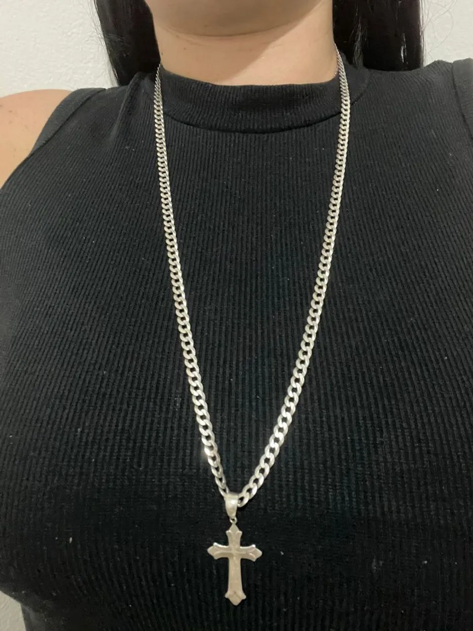 Linda corrente de prata, com design elegante e atemporal. Perfeita para adicionar um toque de sofisticação ao seu visual, seja em ocasiões especiais ou no dia a dia.