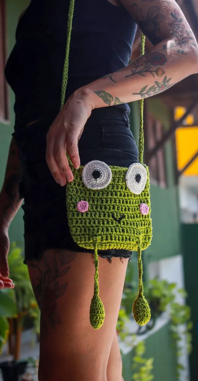 Charmosas bolsinhas de crochê em formato de sapinho, perfeitas para um toque divertido e estiloso no seu dia a dia. Feitas à mão com carinho. Disponíveis à pronta entrega. Aceitamos encomendas e parcelamos no cartão de crédito ?