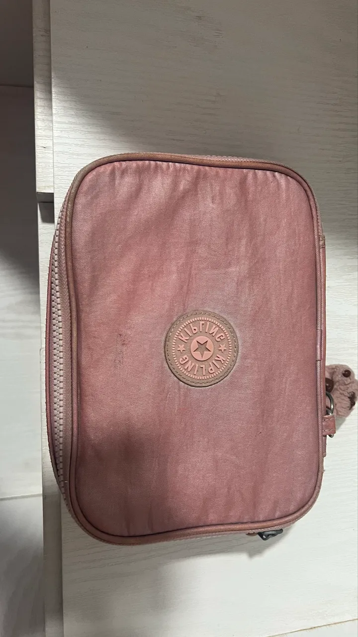 Estojo Kipling rosa, perfeito para quem busca praticidade e estilo! Com design icônico e durabilidade, ideal para guardar seus itens com segurança.