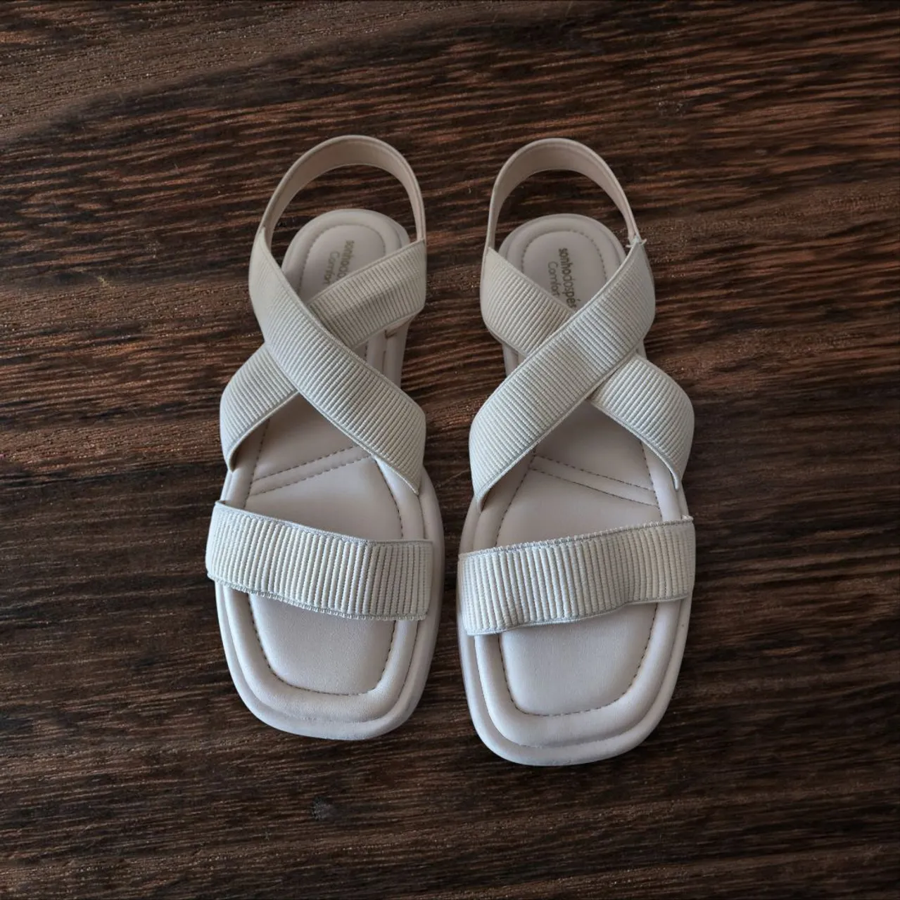 Sandália feminina bege com design moderno e confortável, ideal para o dia a dia. Perfeita para quem busca estilo e bem-estar.