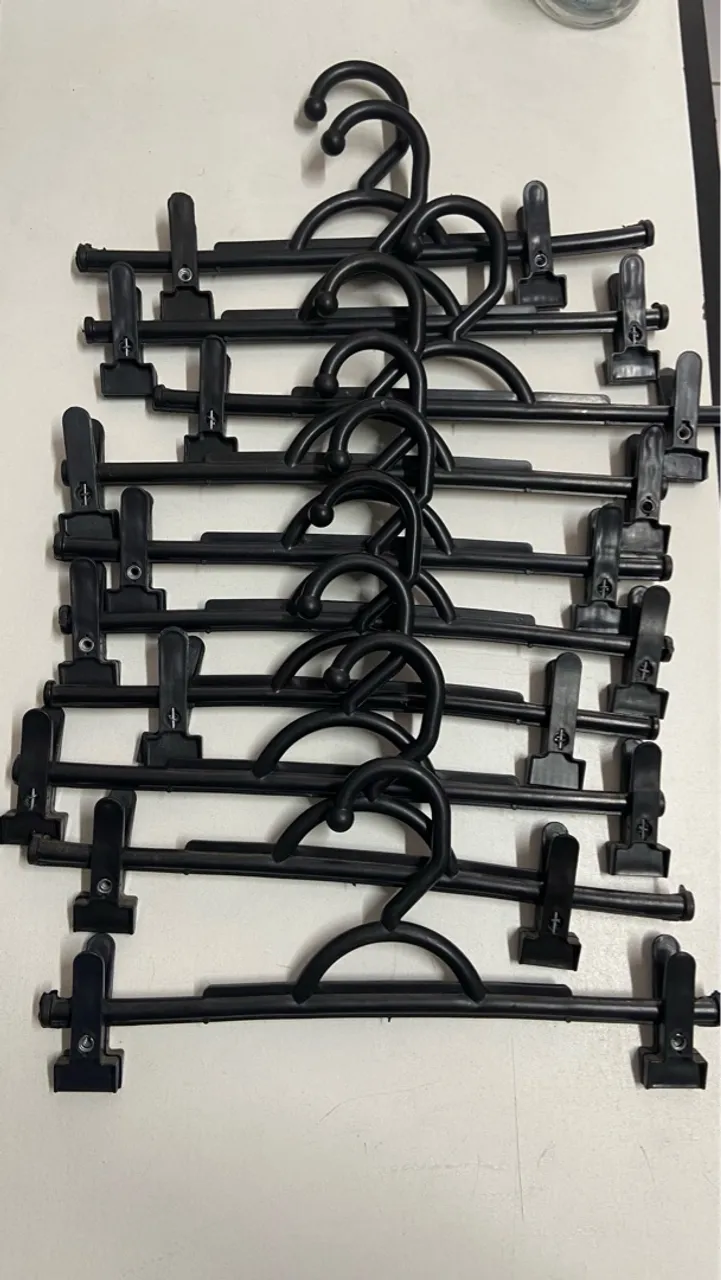 Cabides resistentes com prendedor para otimizar o espaço e organizar suas roupas com praticidade! Ideal para calças, saias e outros. Retirar no Santos dumont
