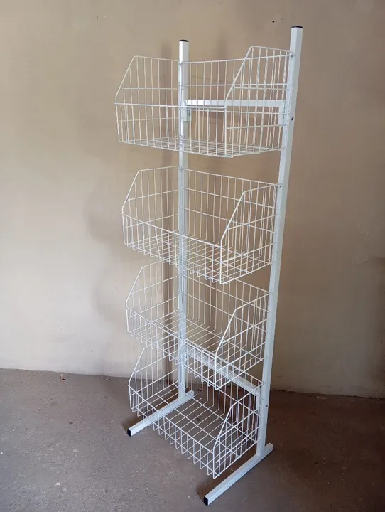 Estante de metal com 4 prateleiras para loja, ideal para organizar produtos e criar um ambiente profissional e organizado. Estrutura resistente e fácil de montar. ZAP