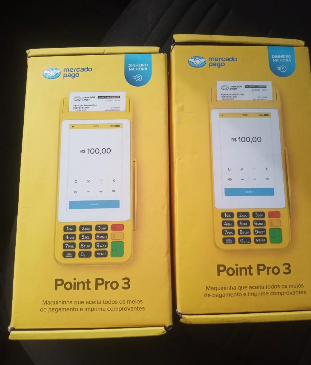 Máquinas de cartão Point Pro 3 do Mercado Pago, aceitam diversas formas de pagamento e imprimem comprovantes. Ideal para o seu negócio!