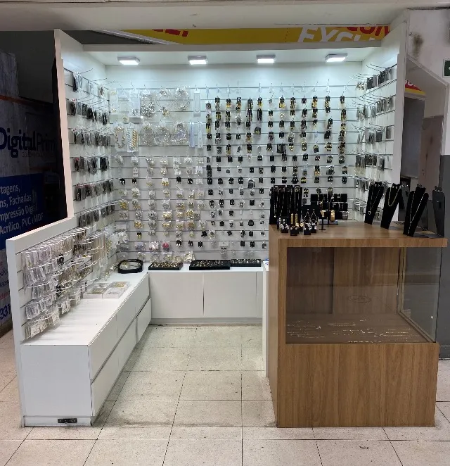 Quiosque de folheados e bijuterias em pleno funcionamento dentro de supermercado na parte baixa ( GBarbosa stella maris).