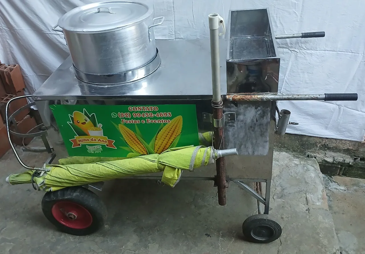 Prepare deliciosos milhos e outros petiscos com este carrinho prático e funcional. Ideal para festas e eventos, este carrinho é a solução perfeita para oferecer um lanche saboroso e atrativo.