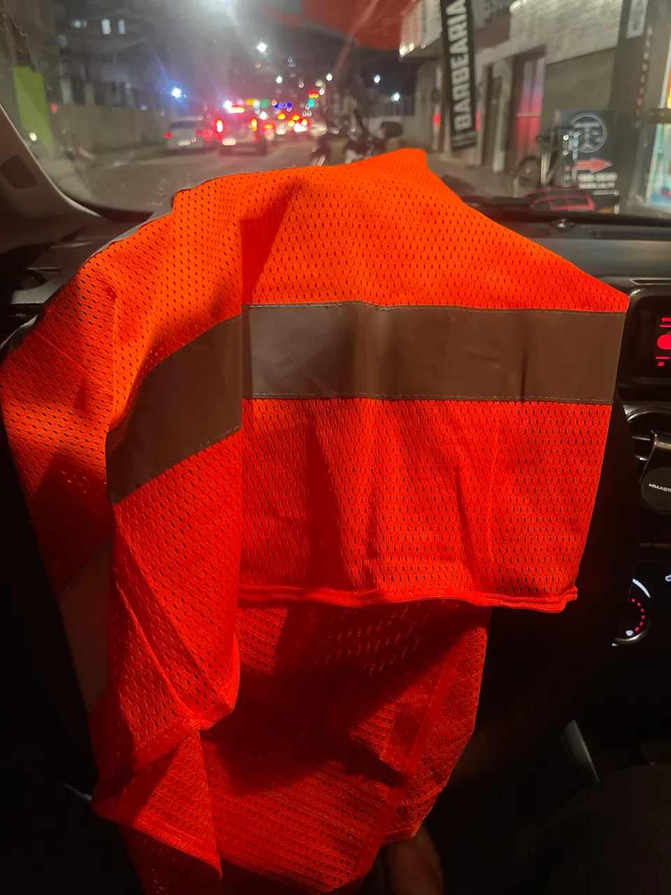 Colete refletivo laranja, ideal para garantir sua segurança em diversas situações. Visibilidade garantida para você se destacar! + Bota de proteção com CA - NOVA USADA 1 dia