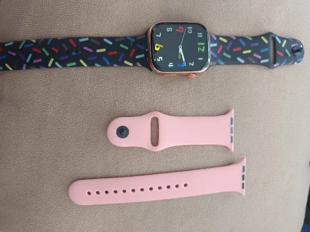 Um relógio estiloso e funcional para você! Design moderno e elegante, perfeito para complementar seu visual. Aproveite a tecnologia no seu pulso! Acompanha carregador, bateria dura muitos dias (mais de 15 dias), muito eficiente.