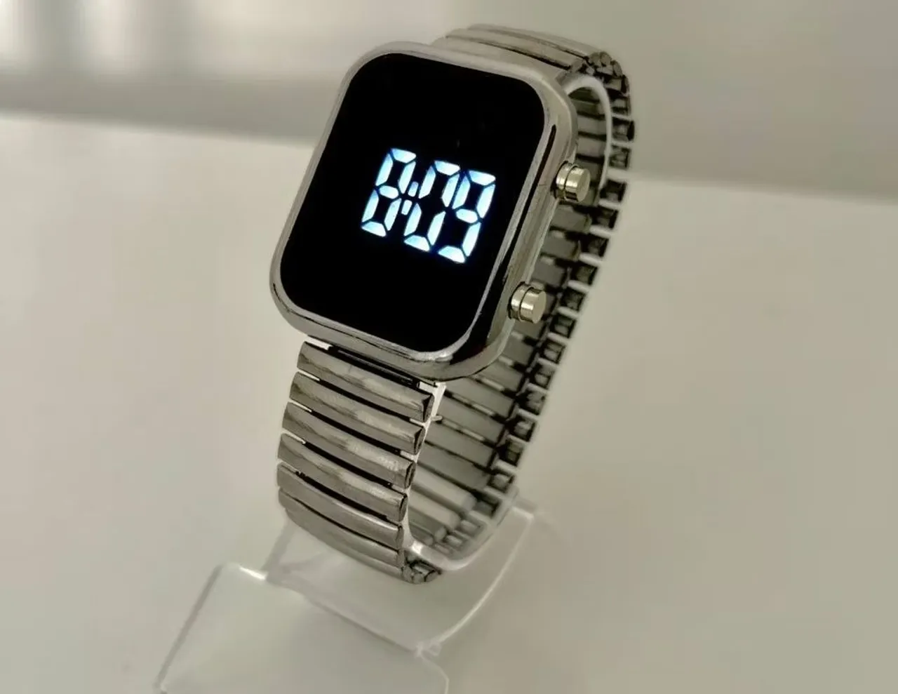 Relógio de pulso digital com design moderno e elegante. Perfeito para quem busca estilo e funcionalidade em um único acessório.
