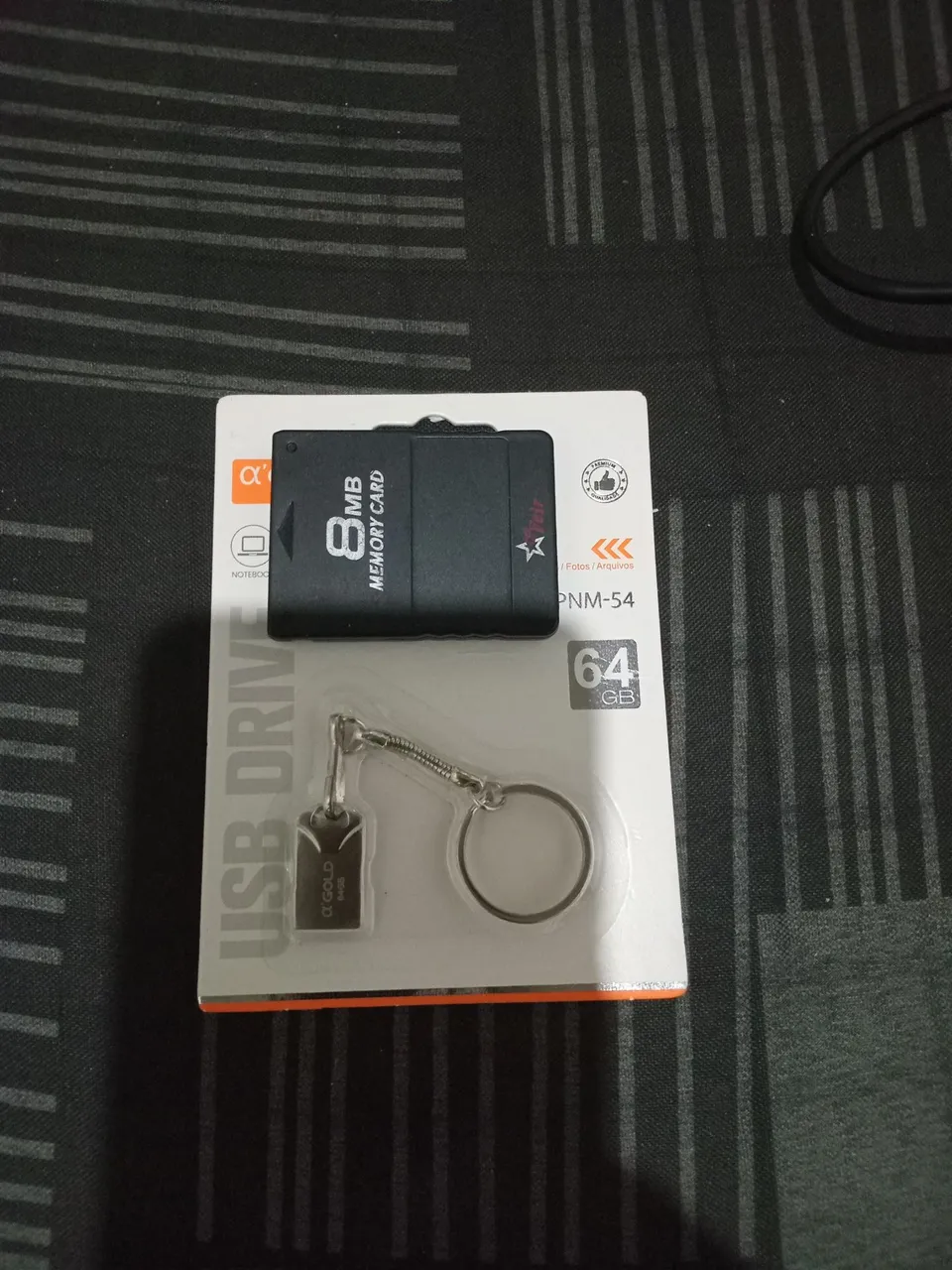 Kit essencial para seu Playstation 2! Inclui um memory card de 8MB para salvar seus jogos e um pendrive de 64GB para armazenar seus arquivos. Garanta já o seu!