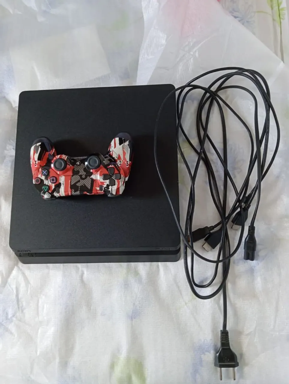 1 ps4, slim semi novo, com 1 controle personalizado e todas as fiações originais 1tbg. Valor R$ 1.600 para negociar