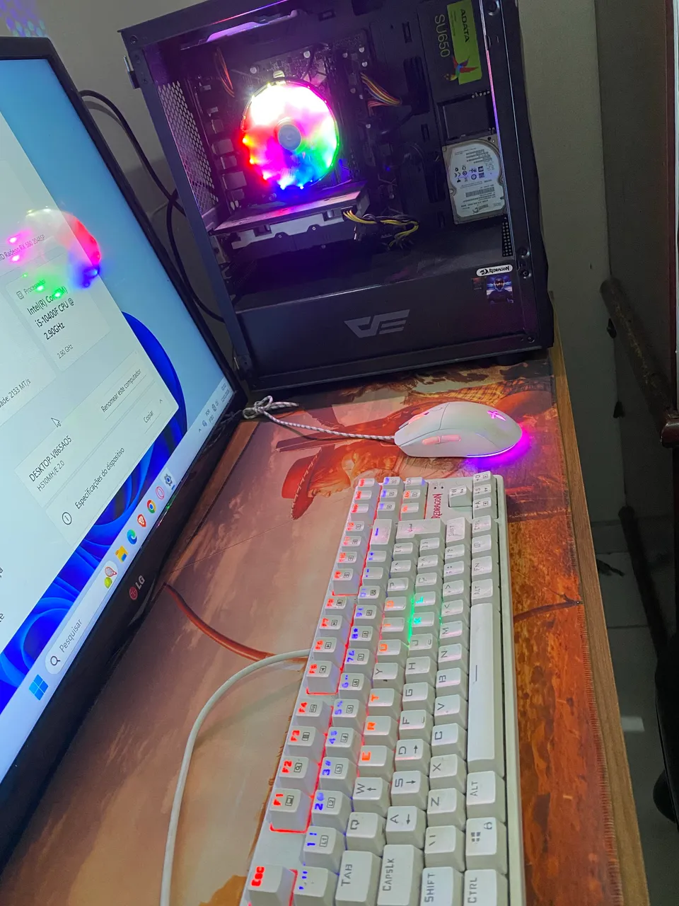 PC gamer completo, com processador Intel Core i5-10° geração, placa de vídeo Radeon RX 580, acompanha teclado mecânico redragon, e mouse. Roda muito bem jogos!