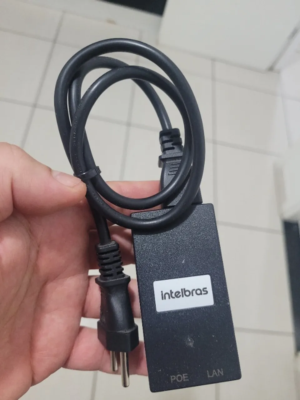 Fonte injetora Power Over Ethernet (POE) da Intelbras, utilizada para alimentar dispositivos compatíveis como câmeras IP e equipamentos de rede via cabo Ethernet.