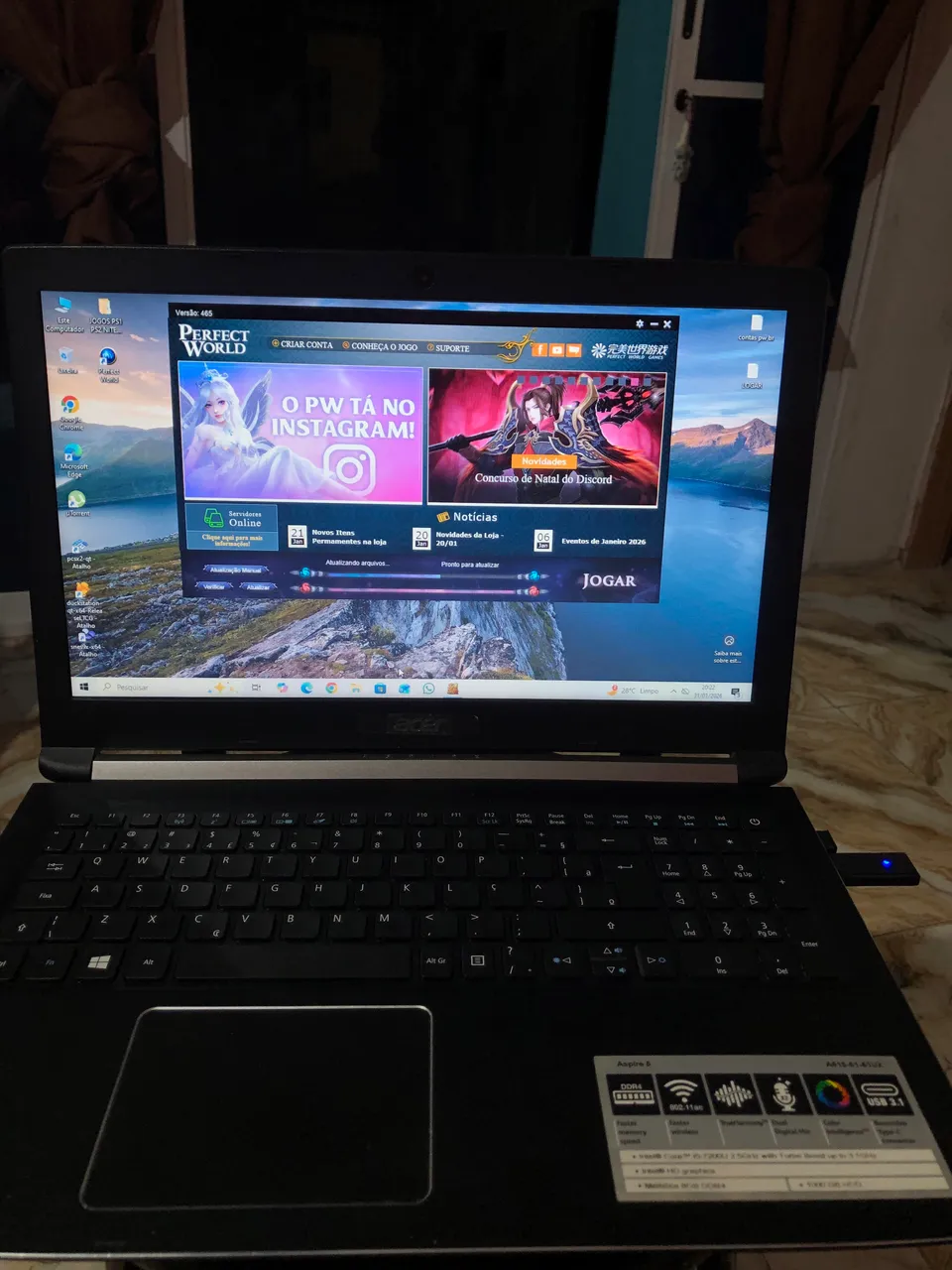 Notebook Acer aspire 5 com tela de alta resolução e processador Intel Core, i5 de 7 geração com 20 gb de memória DDR 4 de 2666 ssd de 500 bateria boa tudo em 100% pode vim conferir valor 1500 mais informações zap 82 ... ver número