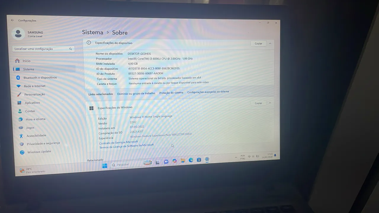 Notebook Samsung com processador Intel Core i3, 4GB de RAM e tela de alta definição. Ideal para tarefas do dia a dia, estudos e trabalho. Leve e portátil, perfeito para te acompanhar em qualquer lugar.