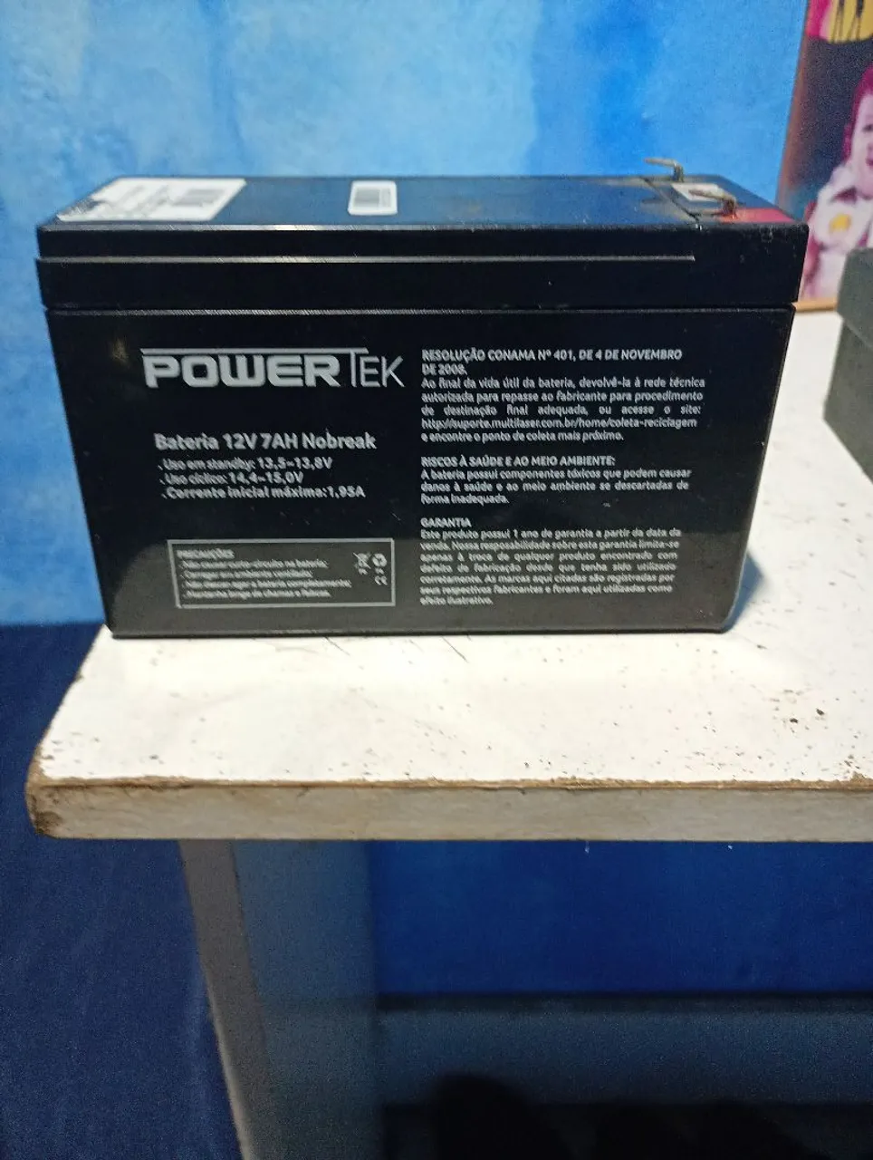 Bateria Powertek 12V 7AH Nobreak, ideal para garantir o funcionamento do seu equipamento em caso de falta de energia. Tenha a tranquilidade de manter seus dispositivos ligados com essa bateria confiável.