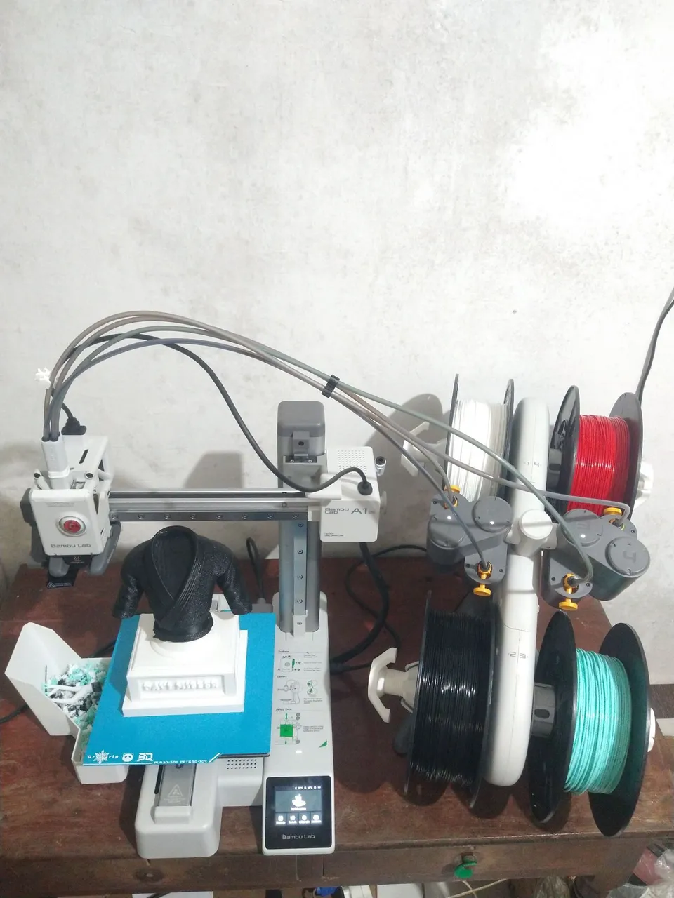 Impressora Bambu Lab A1 Mini Combo (AMS Lite) com pouquíssimo uso, em estado de praticamente nova, acompanhada de um arsenal de 12 filamentos, e acessórios premium nunca usados!