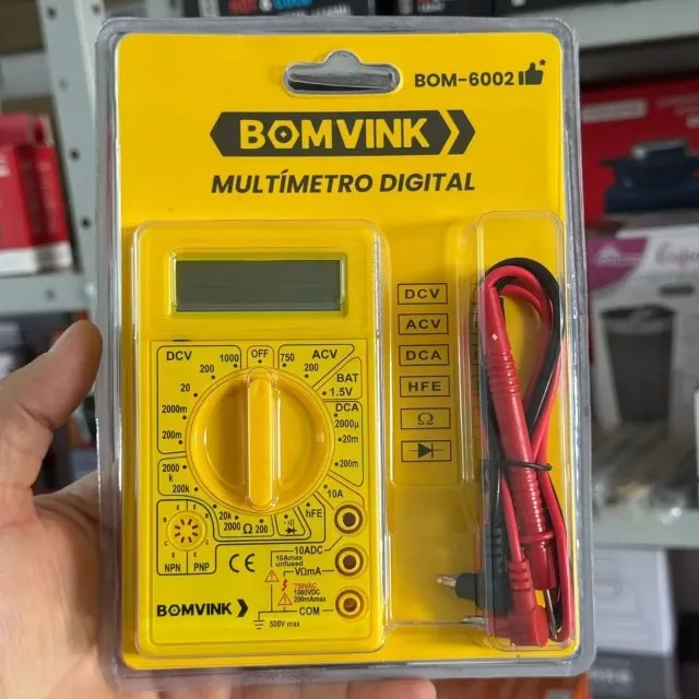 Multímetro digital BomVink BOM-6002: medições precisas e display claro. Essencial para eletrônica e reparos. Adquira já!