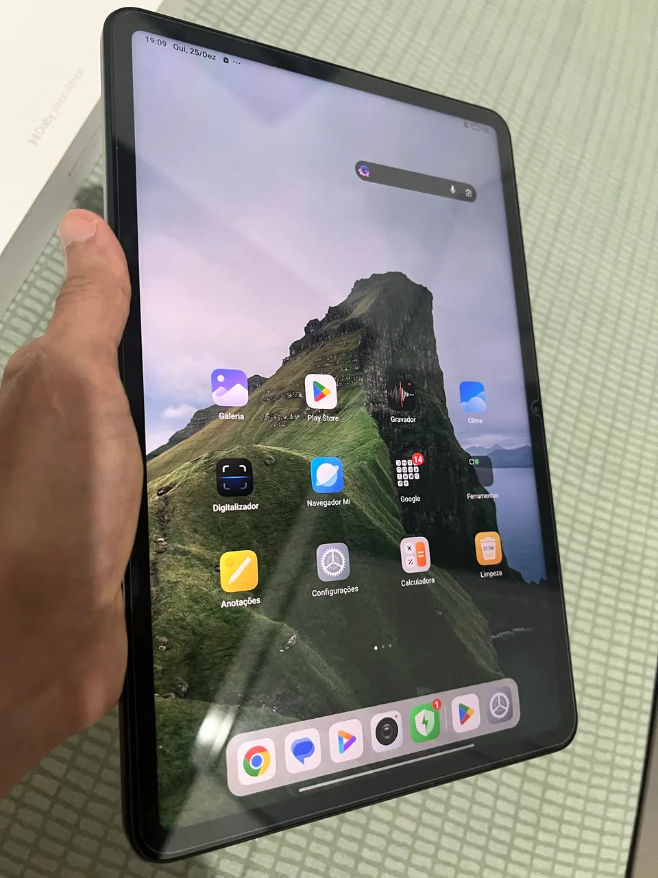 O tablet está perfeito sem nenhum problema e nenhuma marca de uso, 128 gb 6 de ram, estam completo com tudo.