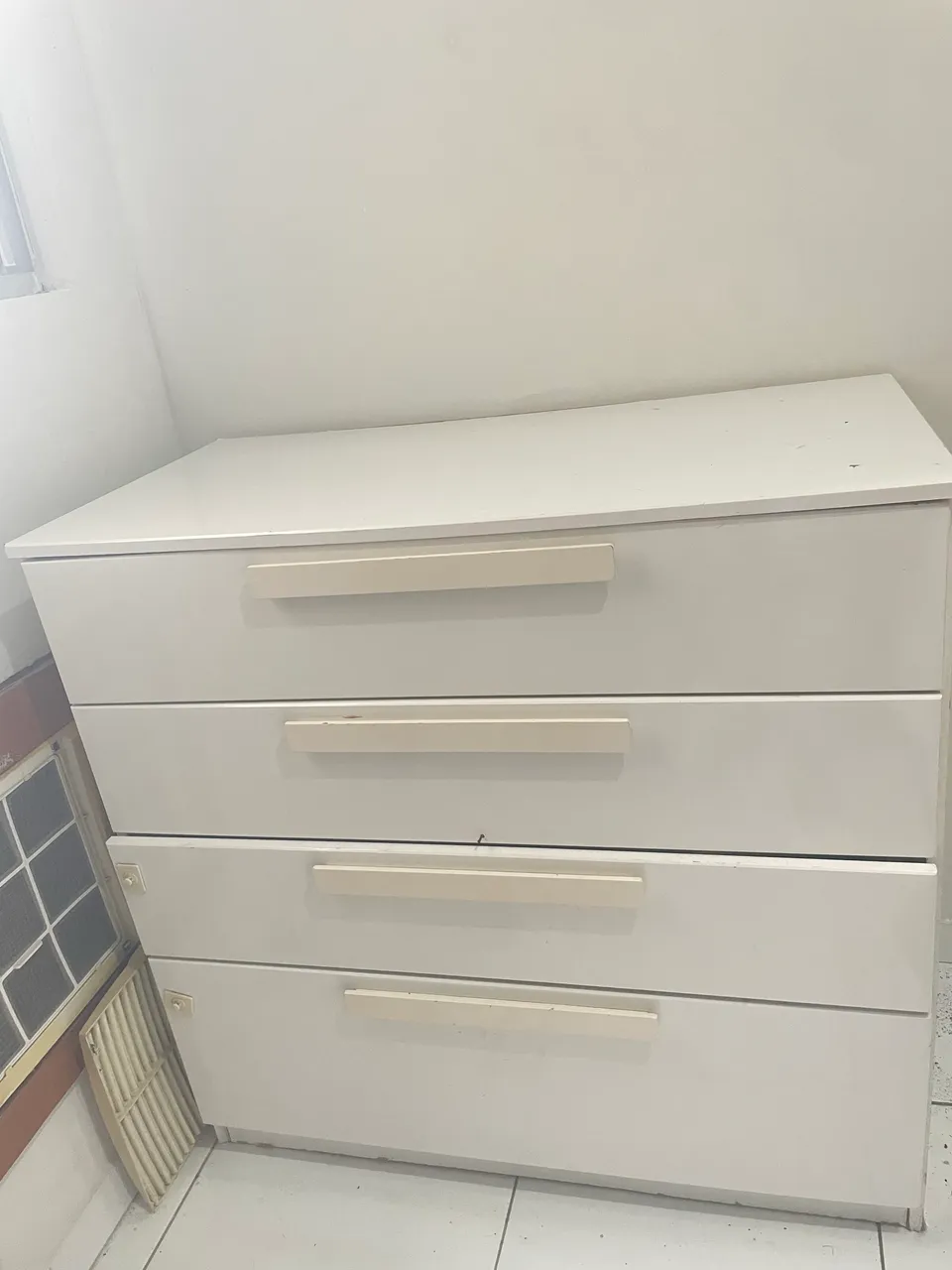 Linda cômoda branca, ideal para organizar seus pertences com elegância e praticidade. Design moderno e funcional, perfeita para diversos ambientes. Aproveite!