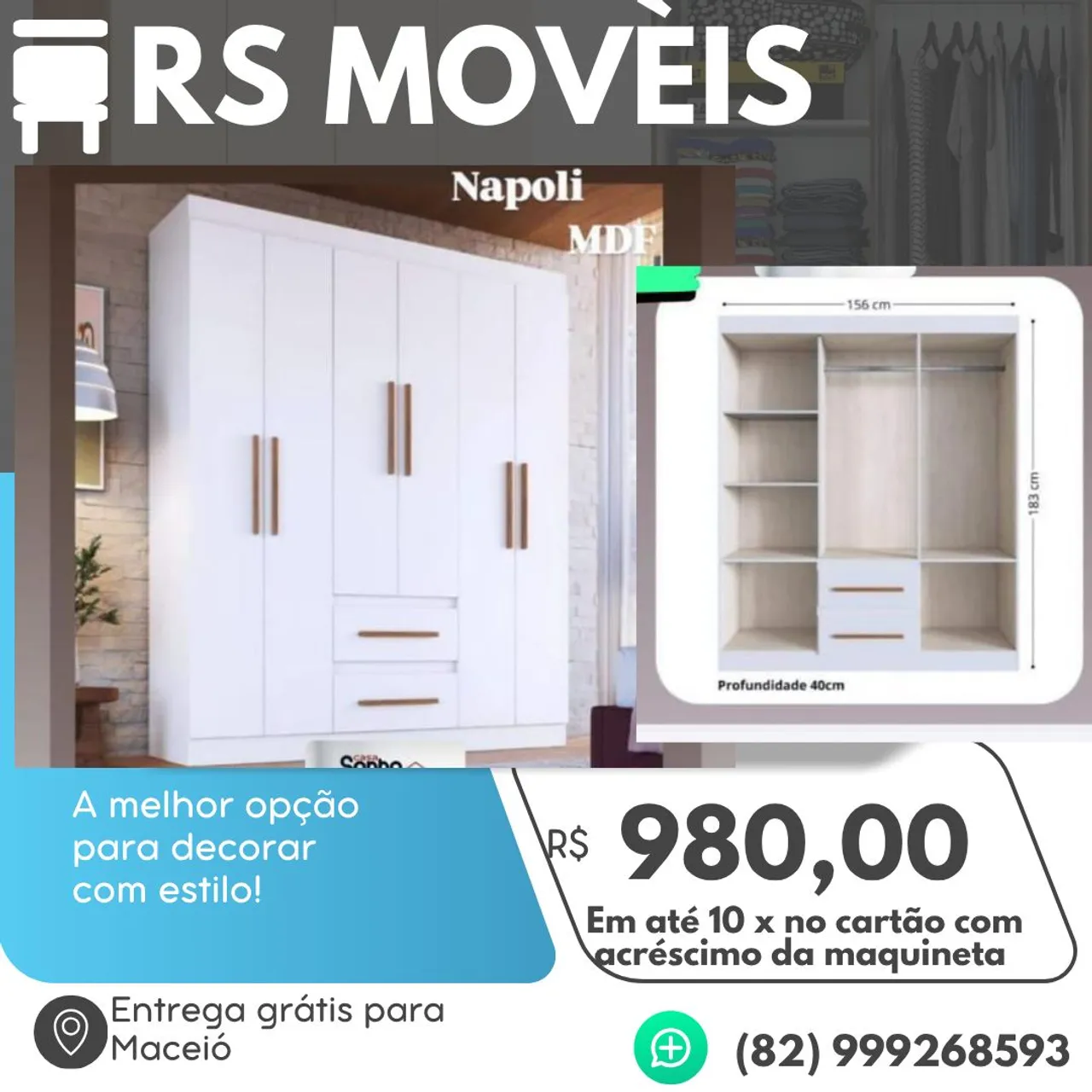 Guarda roupa Napoli em MDF, a melhor opção para decorar com estilo! Design moderno e amplo espaço interno. Aproveite!