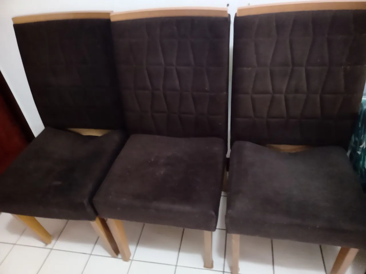 Conjunto com 3 cadeiras de jantar, para aproveitar as peças, o assento está afundando.