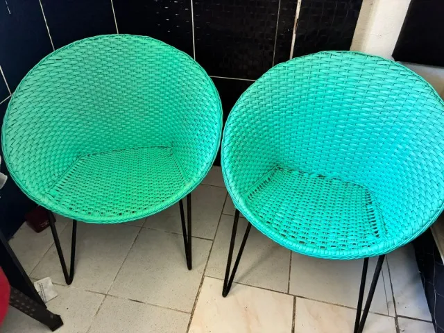 Cadeira verde, R$250,00 cada. Conjunto R$500,00