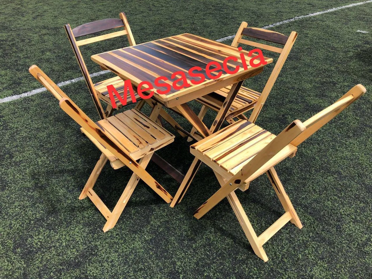 Lindo conjunto de mesa e cadeiras dobráveis, perfeito para otimizar espaços e trazer charme para qualquer ambiente. Feito em madeira de alta qualidade, ideal para áreas internas e externas.