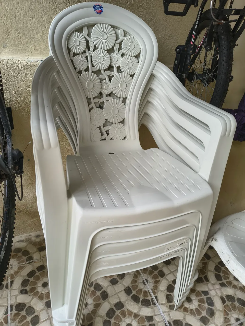 Cadeiras brancas com design floral no encosto, perfeitas para dar um toque de charme e elegância ao seu ambiente!