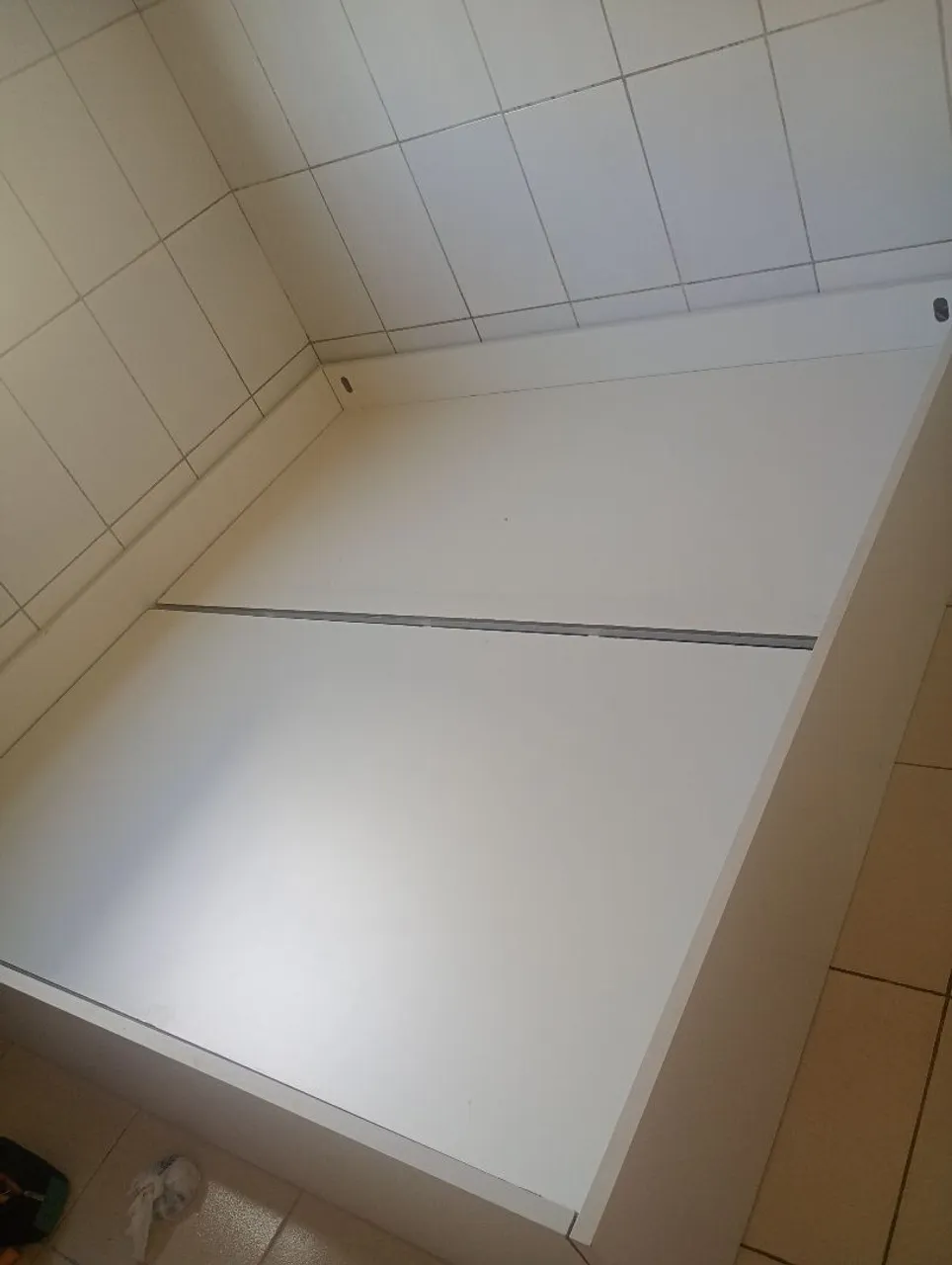Cama em MDF, design moderno e durabilidade garantida. Ideal para quem busca conforto e estilo no quarto. Cama planejada toda branca.