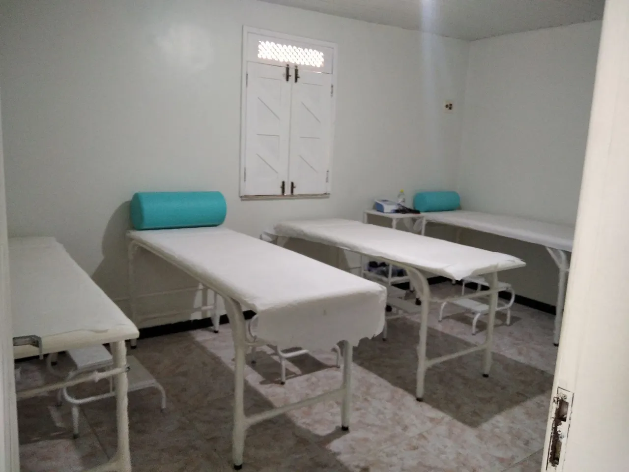 Macas brancas com estofado branco, desgastados pelo tempo. Recomendo olhar pessoalmente antes de comprar. Ótimo para clínicas.