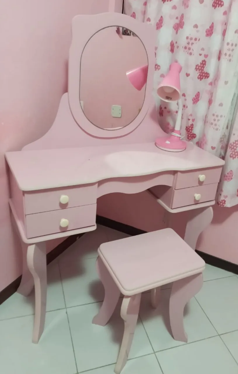 Linda penteadeira rosa, perfeita para decorar o quarto e organizar seus pertences. Design charmoso e funcional para o seu dia a dia.