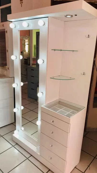 Penteadeira moderna e elegante, com espelho e iluminação para te ajudar a se maquiar com perfeição. Possui gavetas espaçosas para organizar seus produtos de beleza. Perfeita para deixar seu quarto mais sofisticado.