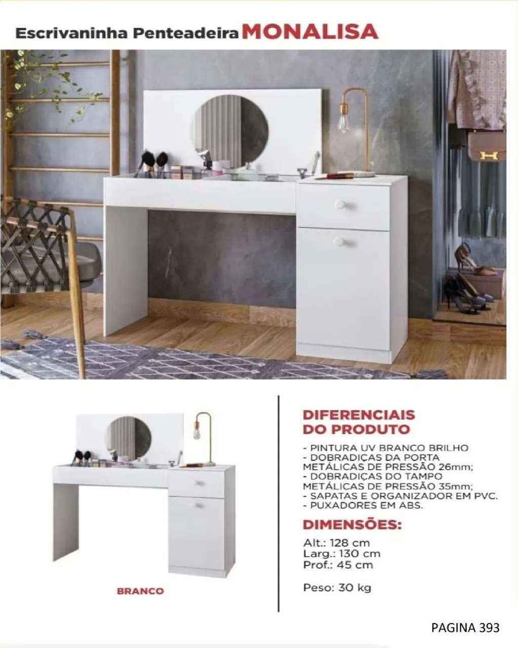Apresentamos a Penteadeira Monalisa, um móvel elegante e funcional para o seu espaço. Com design moderno e amplo espaço interno, ela oferece organização e beleza. Perfeita para quem busca praticidade e sofisticação, a Penteadeira Monalisa é a escolha ideal para transformar seu ambiente. Zap8299... ver número montagem grátis