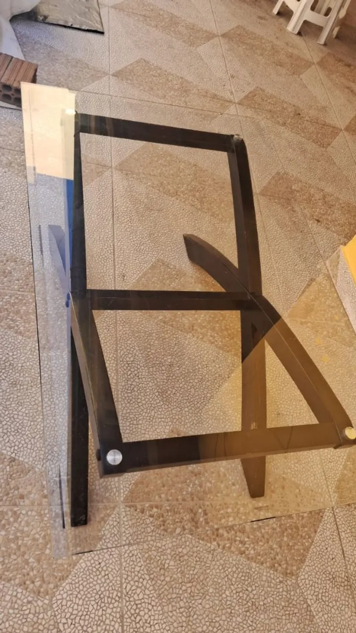 Centro p/ sala, madeira com tampo de vidro, cor mogno. Conservado.