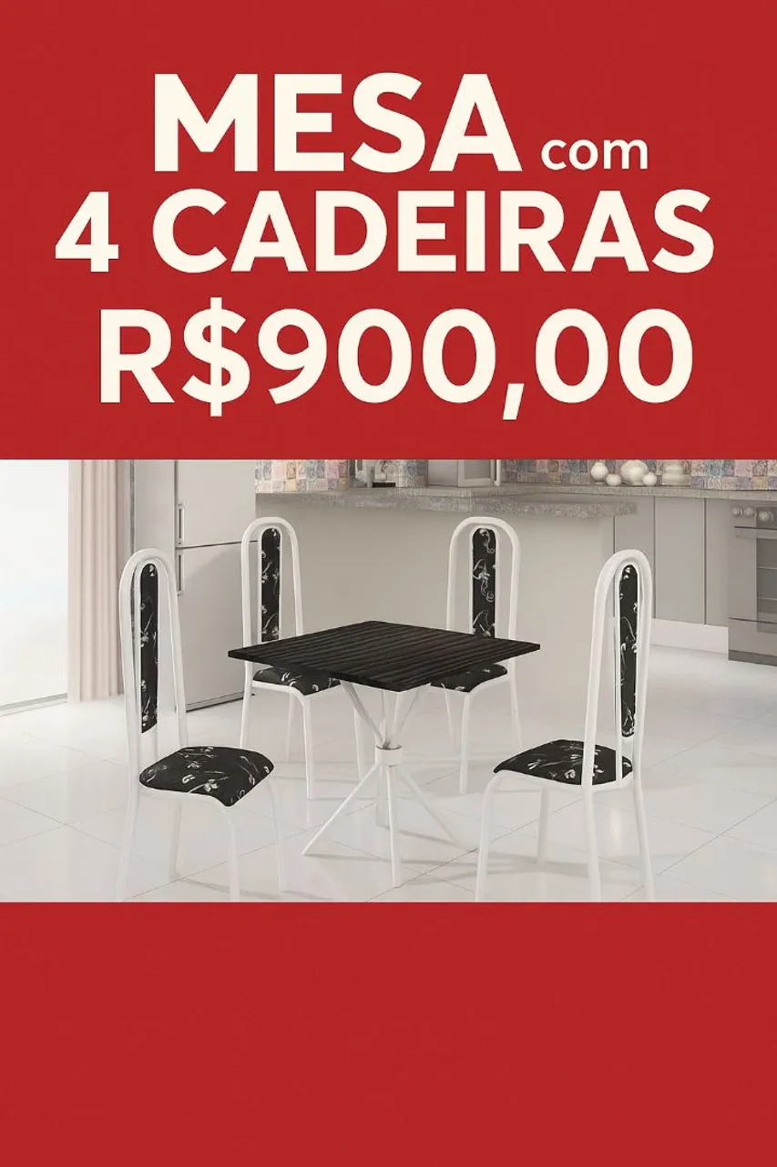 Conjunto de mesa com design moderno e elegante, perfeito para sua cozinha ou sala de jantar. As cadeiras confortáveis e a mesa resistente proporcionam um ambiente agradável.