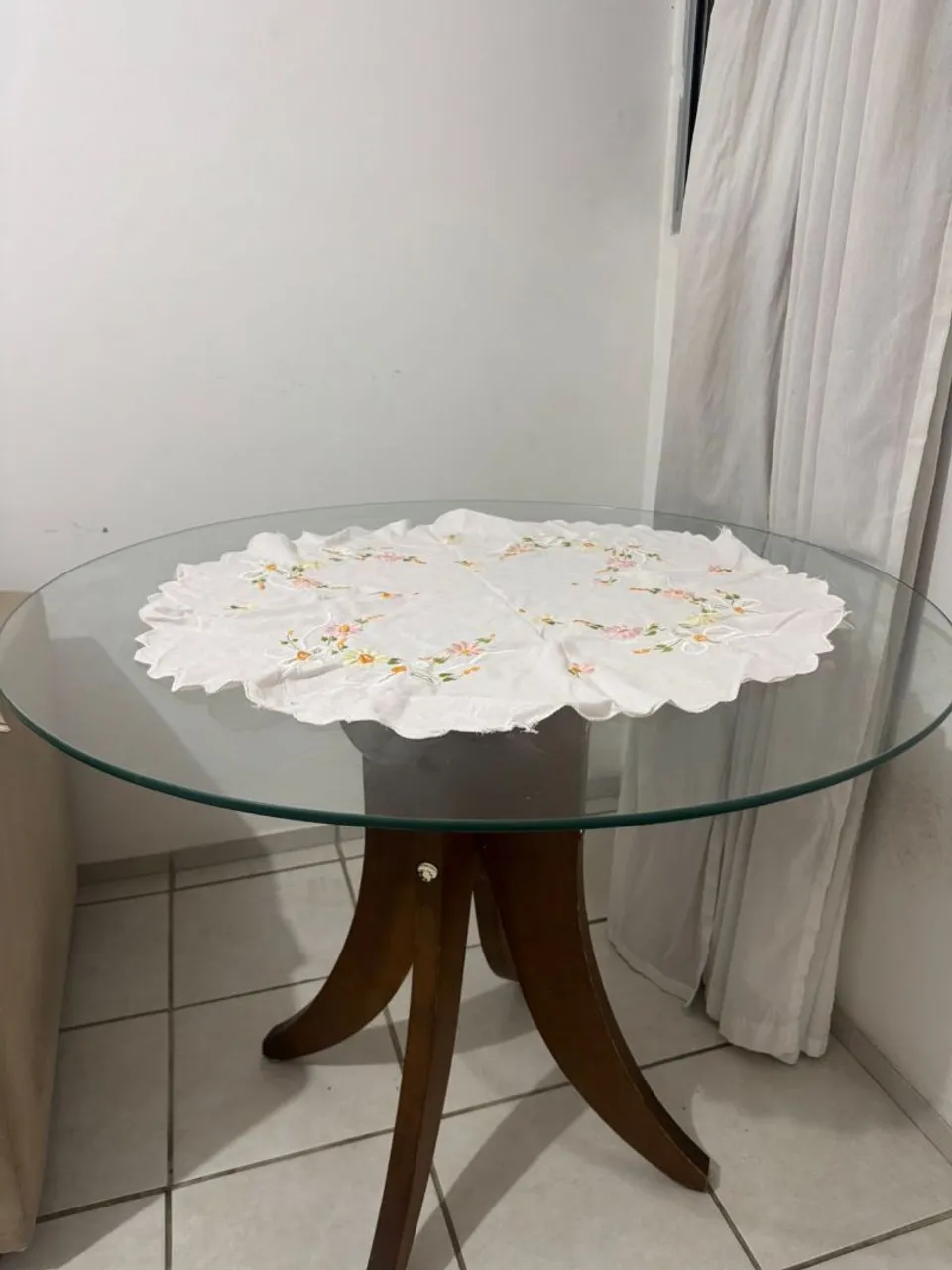 Mesa de cozinha de vidro redonda, excelente estado. Entrar em contato 829... ver número.
