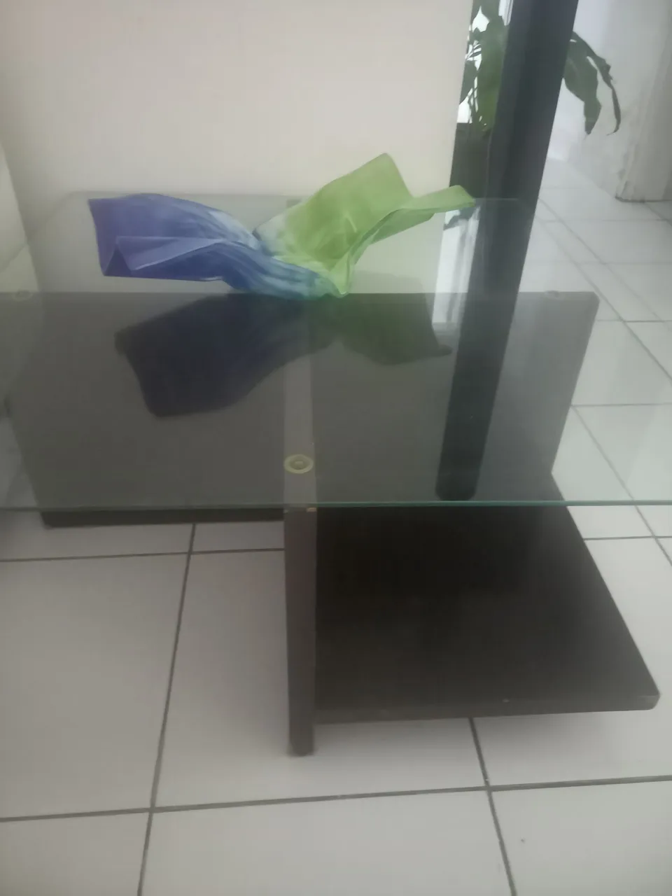 Mesa de centro em MDF, com tampo de vidro em perfeito estado de conservação.