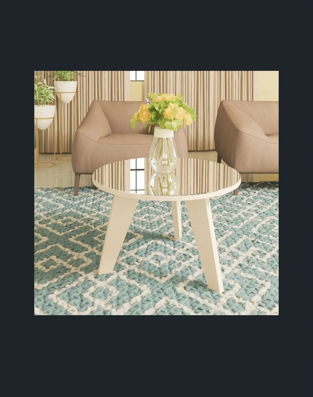 Mesa de centro redonda com espelho