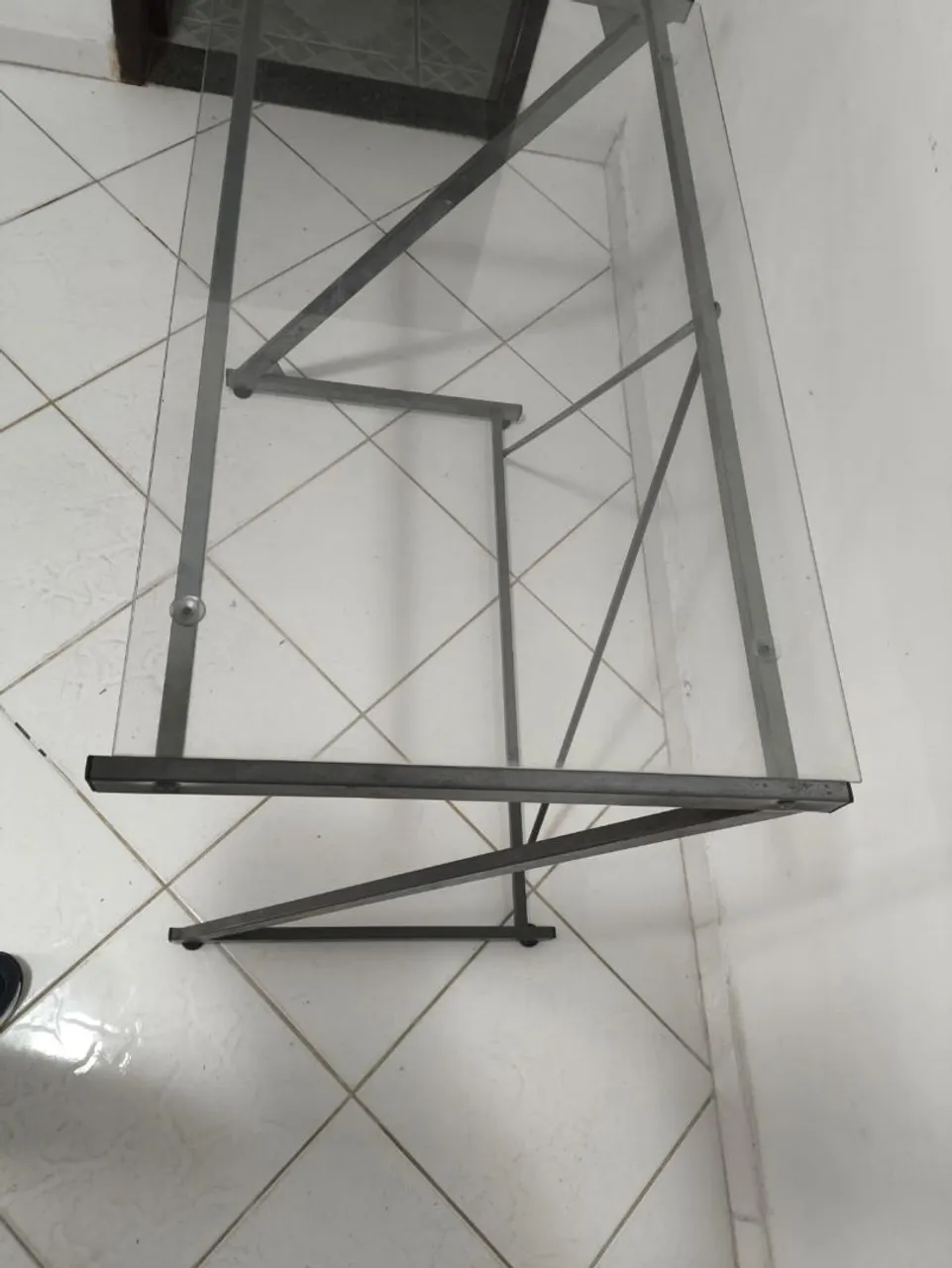 Linda mesa de escritório com design moderno e elegante. Seu tampo transparente proporciona leveza ao ambiente, ideal para quem busca funcionalidade e estilo no dia a dia.