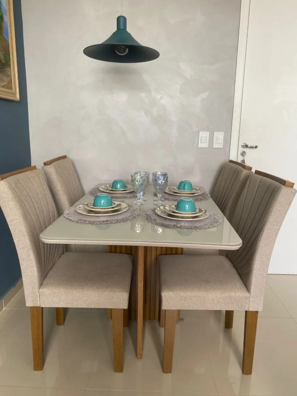 Linda mesa de jantar para 4 lugares, comprei nova e estou vendendo porque adquiri uma casa porteira fechada, já com todos os móveis inclusos.