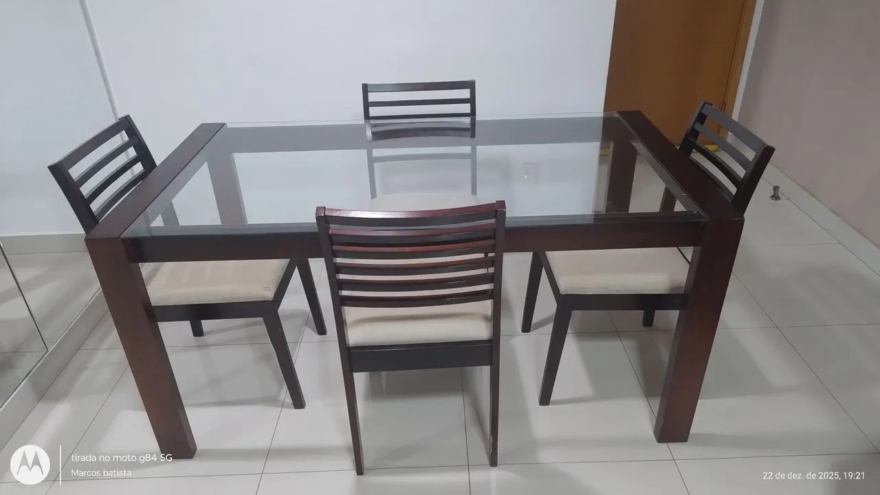 Linda mesa de jantar com 4 cadeiras, perfeita para sua sala de jantar, em ótimo estado de conservação! Design moderno e elegante!