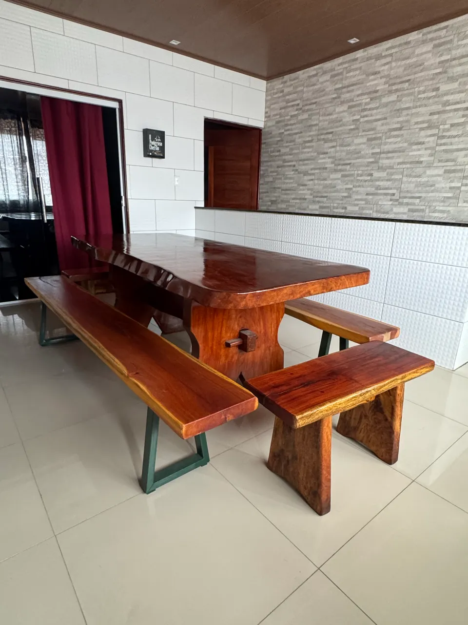 Linda mesa de madeira (jaqueira), perfeita para dar um toque rústico e elegante ao seu ambiente. Feita com madeira de alta qualidade, essa mesa é resistente e durável, ideal para refeições em família ou para receber seus convidados com estilo.